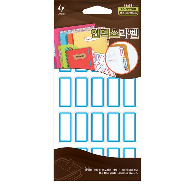 - 레이테크 인덱스견출지 20-G220/청, 18장, 15x33mm
