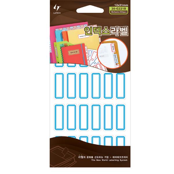 - 레이테크 인덱스견출지 20-G221/청, 18장, 12x31mm